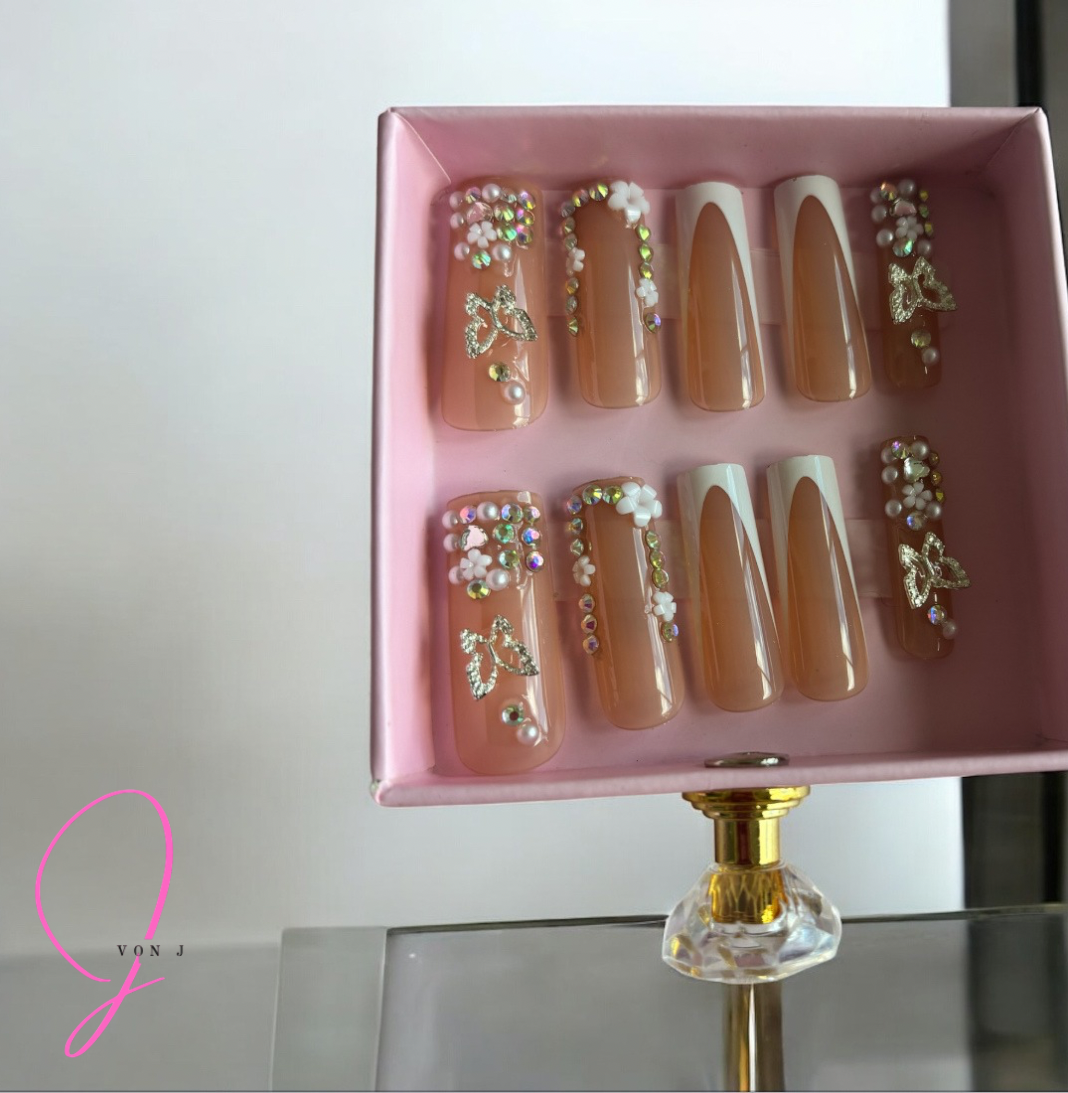 - For longer lasting wear, use brush applicator glue on any embellished nails. (Nail glue sold separately)